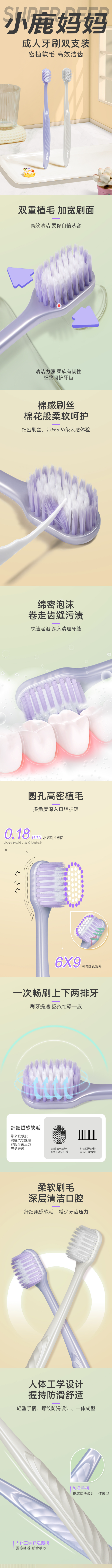 • 小鹿妈妈牙刷软毛成人宽头柔软护龈纤细情侣牙刷男女家庭套装批发